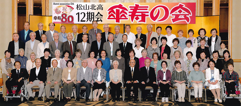 2022年6月6日、12期会では「満80歳・傘寿の会」を故郷松山、ANAクラウンプラザホテル松山で開催しました。当日は67名の同期生の参加を得て大いに盛り上がりました。また、スペシャルイベントとして「市村公子ミニコンサート」も開かれ、力強い市村さんの美声に圧倒されました。