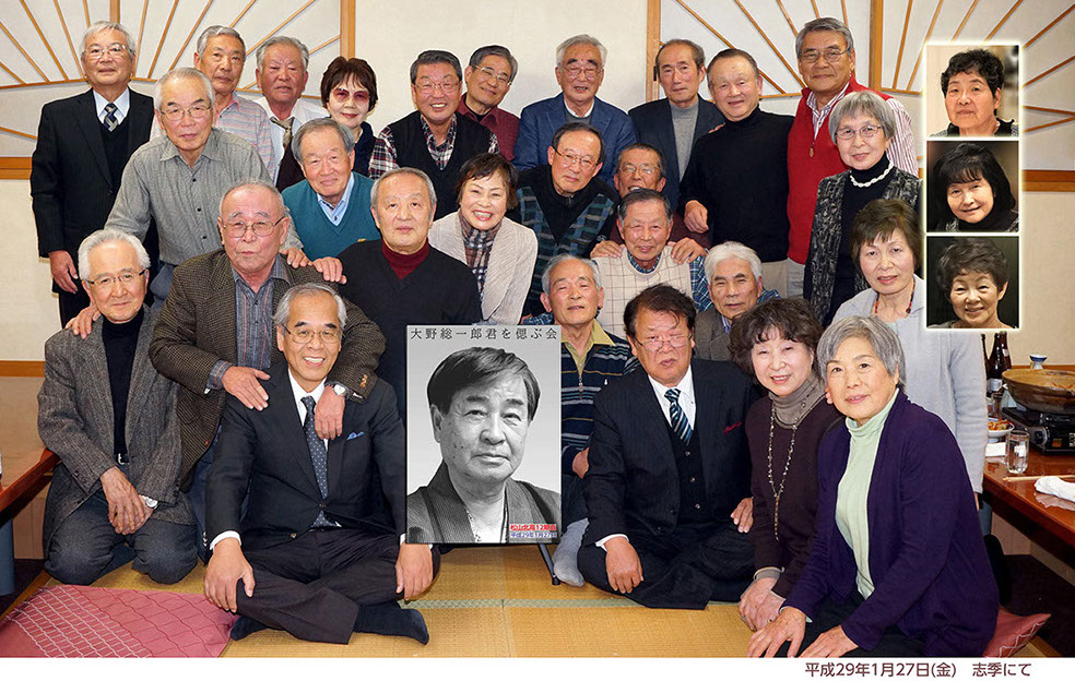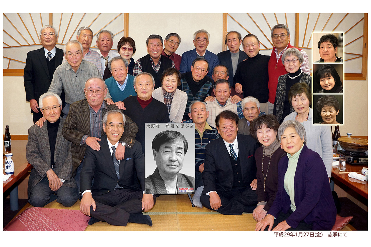 平成28年8月27日に逝去した故大野総一郎君を悼んで「偲ぶ会」を松山で開催しました。当日は夜会にも拘わらず30名の仲間が集いました。生前の思い出話に花を咲かせ、総一郎君の深い人望に改めて参加者一同が感謝しました。