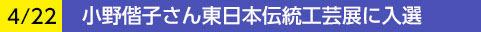 12期の小野偕子さん(日本工芸会正会員)は東日本伝統工芸展の漆芸(蒔絵)部門で入選しました。これで10回目の入選です。